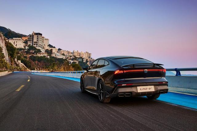 在黑色运动饰件的装扮下,2025款第二代UNI-V拥有更为凌厉的线条、星芒轮毂以及四出式排气布局,整车显得更具视觉张力。另外,大溜背与智能电动尾翼在提升视觉效果的同时,进一步优化风阻、梳理气流的作用。